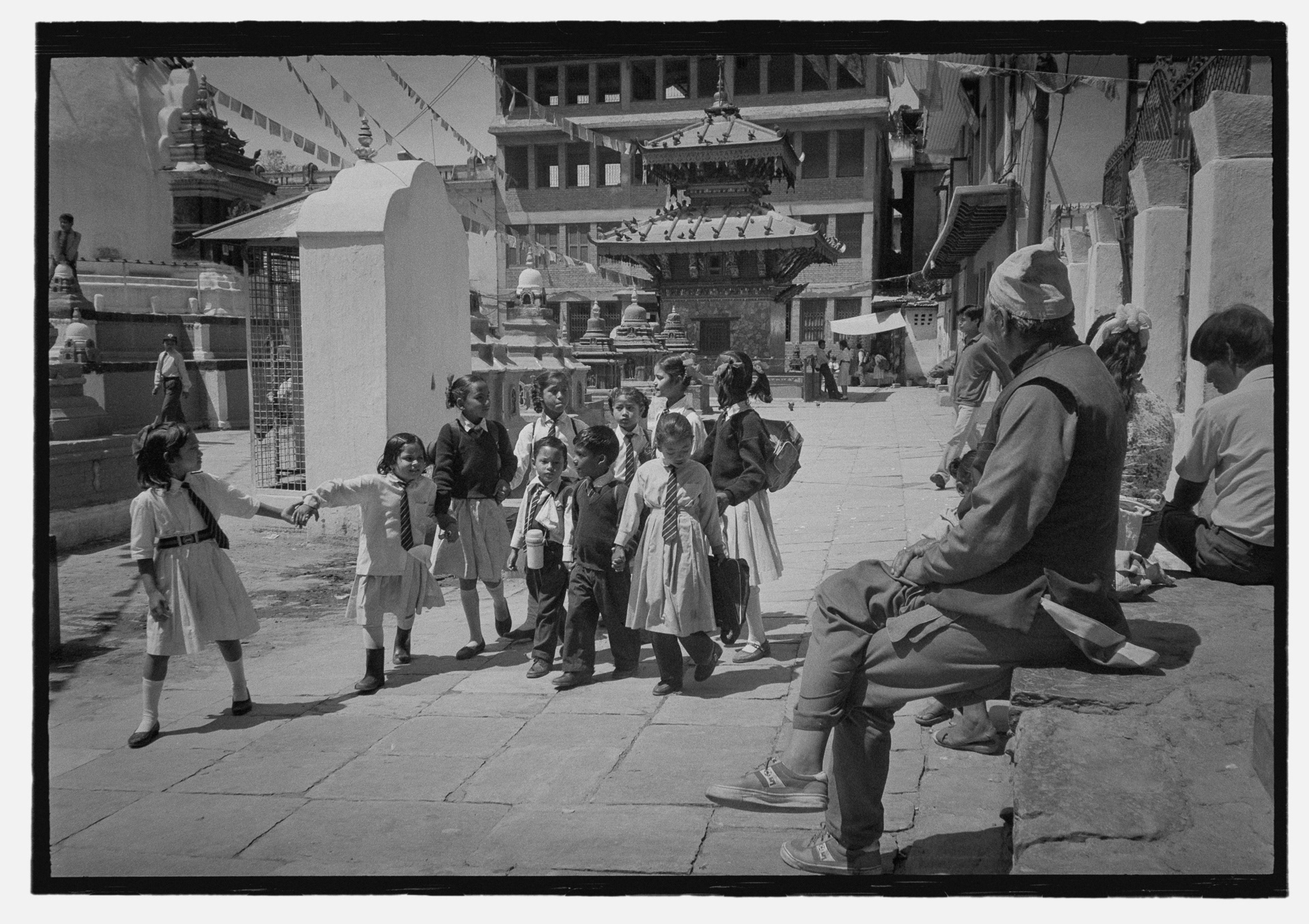 Analogue. Black and white. Grainy. Compact camera: Olympus XA. No frills. No perfection. Just the raw, fleeting moment. Spring ’97—one journey, one gaze, one time. India and Nepal: unrefined, unpolished. Before pixels. Before poses. Before the smooth tide of globalisation. Street scenes: direct, chaotic, unfiltered. Real. A world that has vanished—harsh and humble, simple and unguarded in its being.