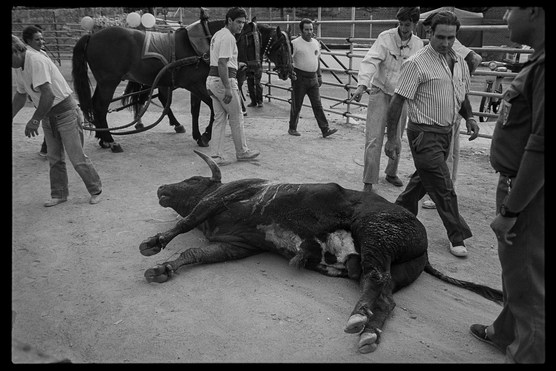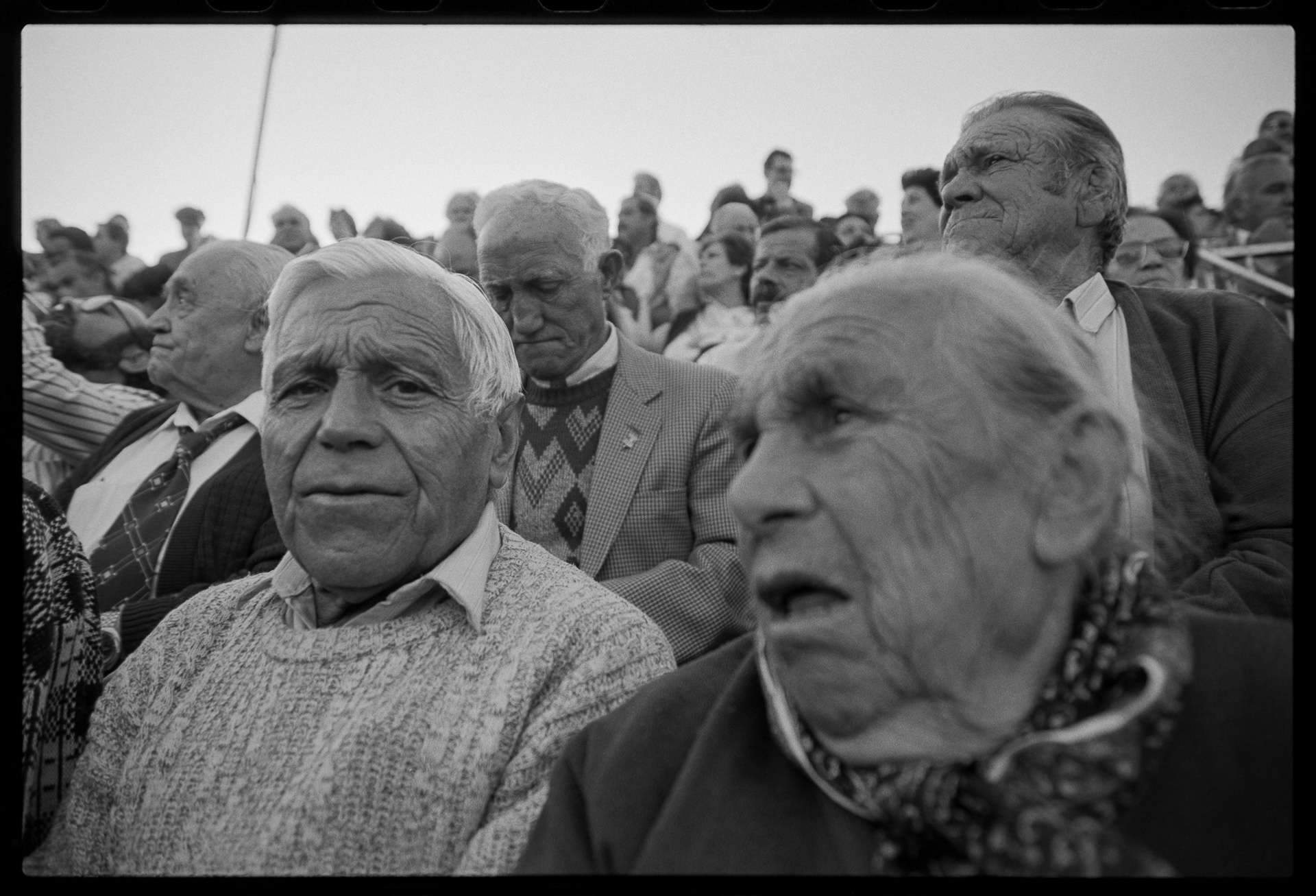 Analogue. Grainy tension. Bullfighting, deeply rooted in the city and its traditions: bulls, toreadors, spectators, rituals. Centuries-old practices, passed down through generations, felt in the confrontation between man and beast. What once seemed ordinary now feels distant. Images of a time and a world that changed and vanished. Photography tames time, capturing what once was.