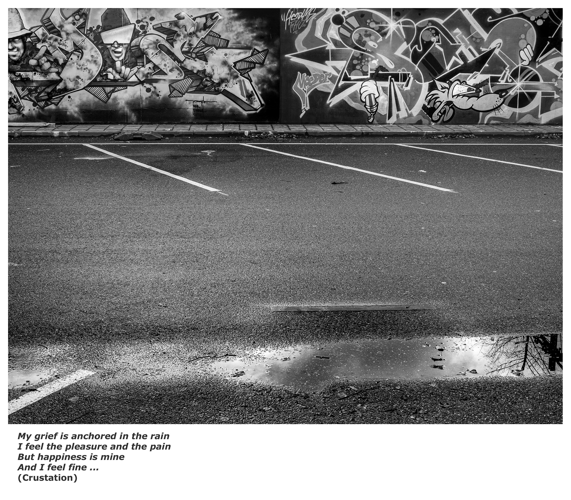 Graffiti is a snapshot of struggle and expression, but also of impermanence. It is a constant interplay between creation and environment, between presence and decay. This series captures how graffiti merges with the urban landscape of the Netherlands, breaking the rigid rhythm of concrete and stone and giving the city a different face. What is captured here may no longer exist. Statements fade, covered by new layers of paint, concrete, or time. Yet something always remains—the traces of an expression that moves to the rhythm of decay and renewal. Photography makes this moment tangible. It captures not only the raw marks and patterns but also the context in which they exist. The images mark the moment between creation and disappearance, between the one who leaves something behind and the photographer who preserves it. One impulsive and fleeting, the other deliberate and lasting.